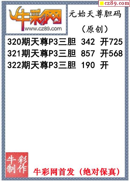> 元始天尊胆码图322期体彩P3图谜(原创)